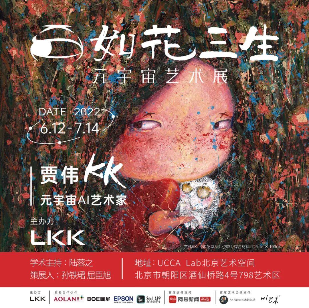 2022年6月12日至7月14日,元宇宙AI艺术家 贾伟KK 国内首展 — “如花三生元宇宙艺术展”在798艺术区 UCCA Lab 北京艺术空间举办。